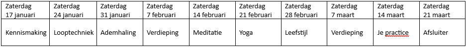 Hieronder de lesdata van de actuele cursus met bijbehorende thema's: